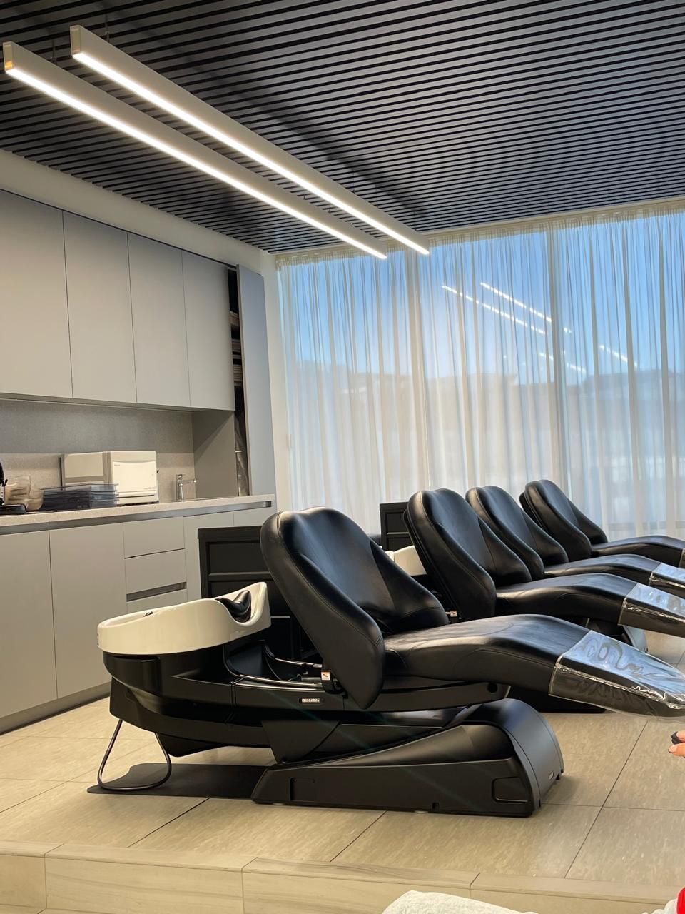 В нашем салоне есть отдельные парикмахерские залы: женский и мужской. Маникюрный кабинет на трех клиентов, педикюрный зал с комфортными кресло-реклайнерами. Комната с уютным креслом для ресничек. Зал со спокойной музыкой для косметологии и отдельный кабинет для расслабления во время массажа. А так же солярий и коллариум.